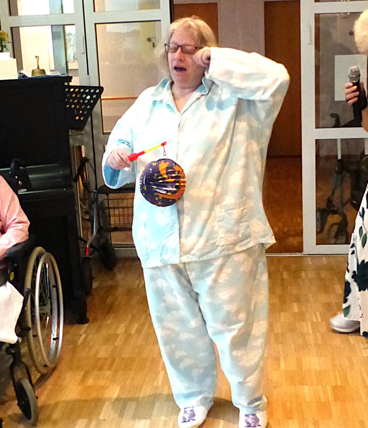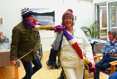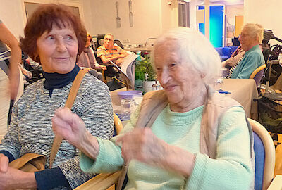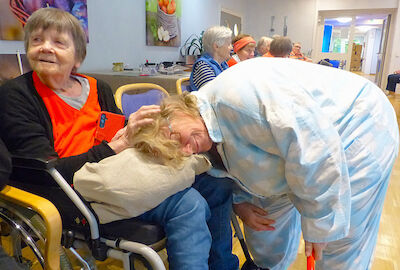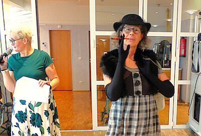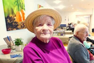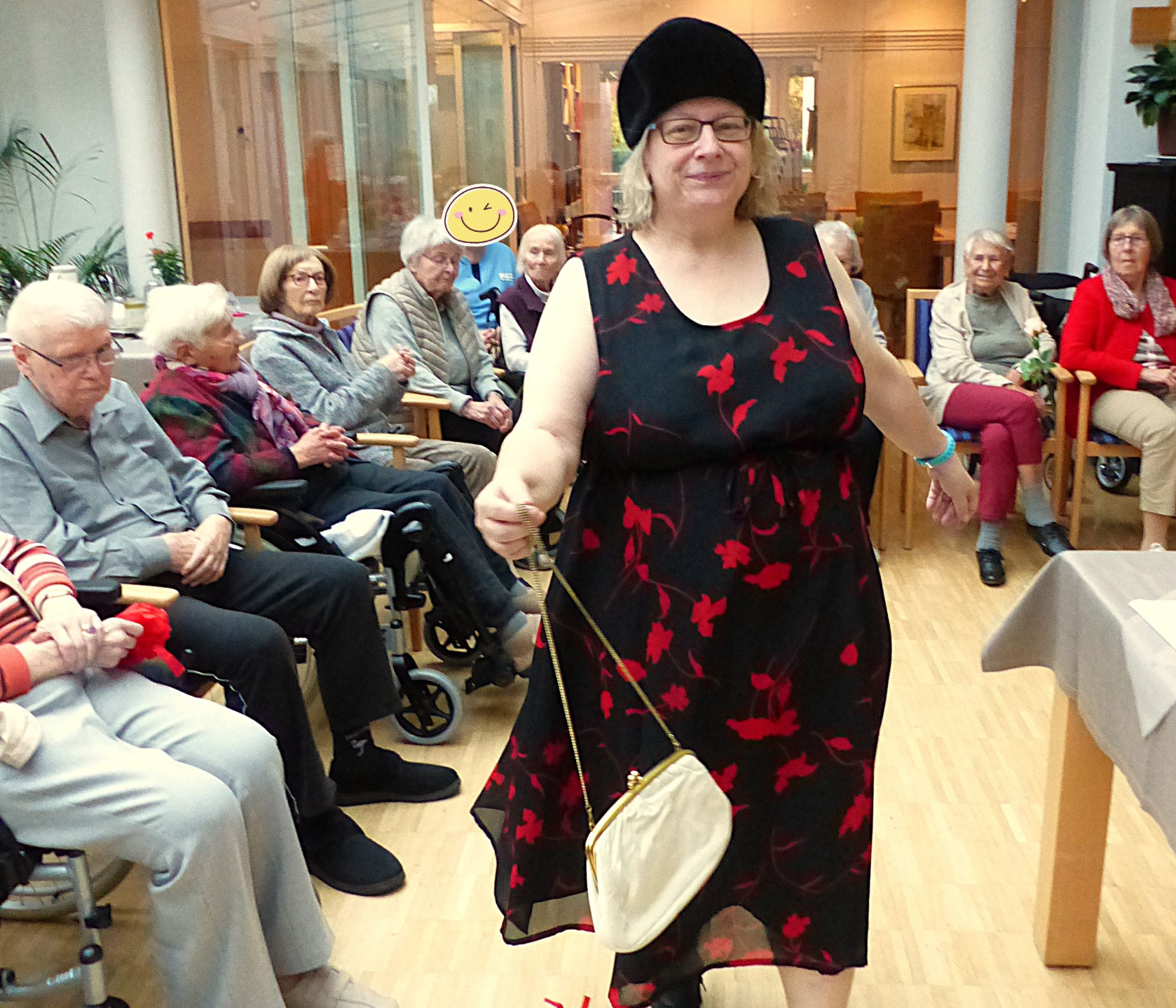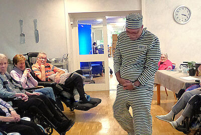 Mit Charme und Witz führte Katrin Schmidt durch das Programm und entführte die Bewohnerinnen, Bewohner und einige Angehörige in die große, weite Welt der Mode. Begleitet von flotten, bekannten Schlagern präsentierten die Mitarbeitenden der sozialen Betreuung mit viel Elan und Freude ihre kreativen und ausgefallenen Kostüme.